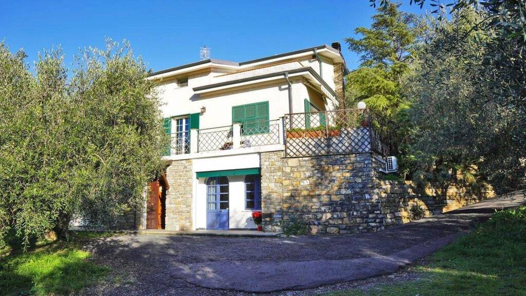 Im Hinterland von Imperia, nur wenige Minuten vom Stadtzentrum und dem Meer entfernt, befindet sich dieses große Haus eingebettet in die Landschaft und die typischen Olivenhaine der Gegend.