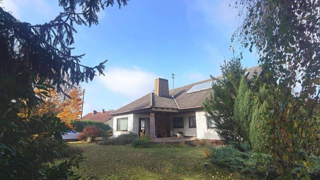 Dieser Bungalow aus dem Jahr 1974 bietet auf ca. 135 qm Wohnfläche alles, was komfortables Wohnen auf einer Ebene so besonders macht. Das großzügige Wohnzimmer mit offenem Kamin, bildet das Herzstück des Hauses, ein Ort, an dem man sich sofort wohlfühlt. Vom Wohn- und Schlafzimmer gelangen Sie direkt auf die große Terrasse mit gemauertem Ofen, perfekt für gemütliche Abende unter freiem Himmel.
