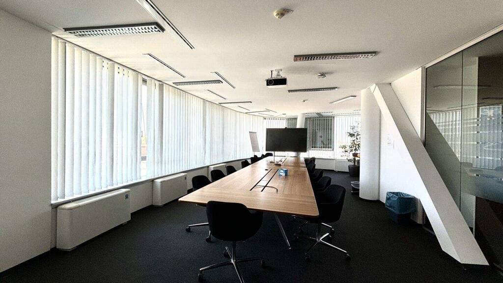 Doppelboden mit Teppichfliesen, Ausbau mit Gipskartonständerwänden, Abgehängte Decken, Raumhöhen Büro 2,80 m, Brandmeldeanlage, Videoüberwachung, Zutrittskontrolle, Heizung Fernwärme / Kühlung Fernkälte, Fan Coils in Büro- und Serverräumen, Lüftung über öffenbare Fenster und eine Be- und Entlüftungsanlage, Brandmeldeanlage, Videoüberwachung, Zutrittskontrolle