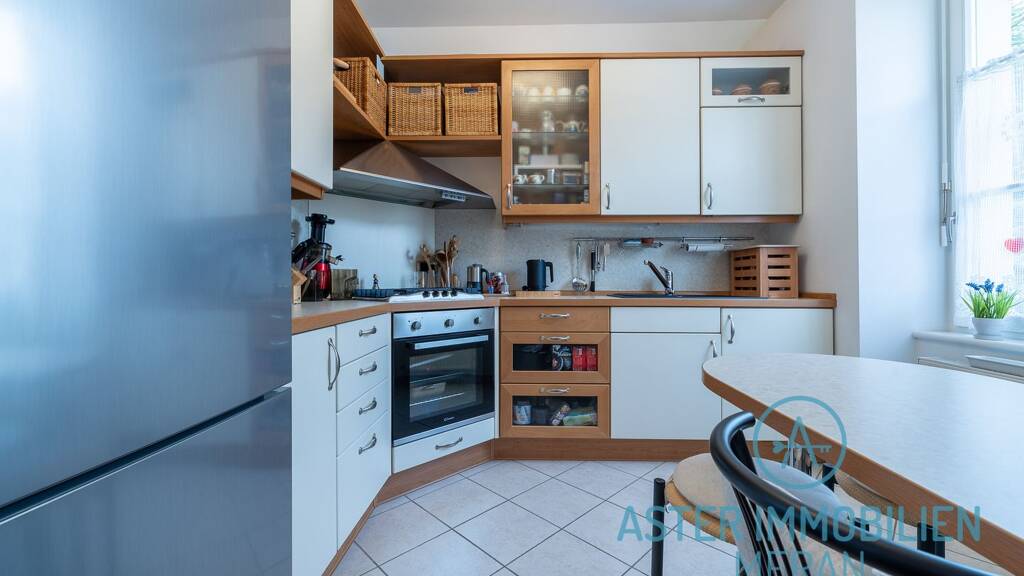 Ideal für Paare, die Stil und Komfort suchen. Vom Wohnbereich erreichen Sie den Balkon. Die abgetrennte Wohnküche ist perfekt für gemeinsame Abende und gemütliches Beisammensein. Der Flur mit großem Einbauschrank bietet reichlich Stauraum und führt zum liebevoll gestalteten Badezimmer mit Fenster.