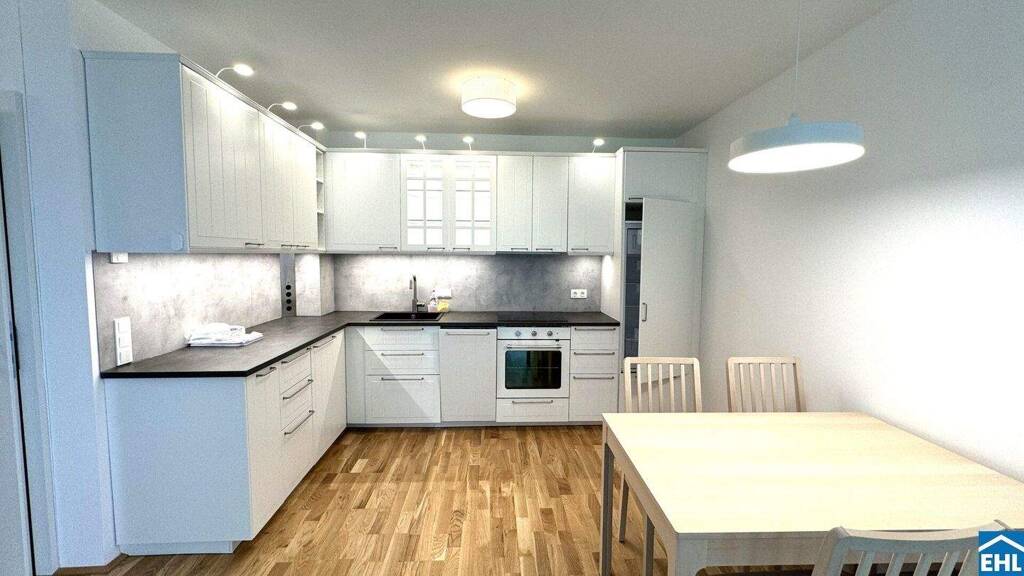 Die Wohnung war kurzzeitig bewohnt und würde inkl. der abgebildeten Möblierung übergeben werden. Die Ablöse für das auf den Fotos abgebildete Mobiliar inkl. Küche beträgt EUR 2.000,-.