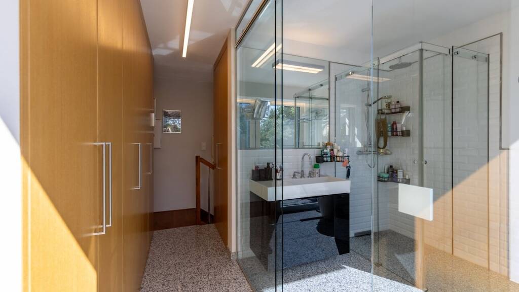 Die Immobilie ist mit einer energiesparenden Wärmepumpe und einer Solaranlage ausgestattet, die ein besonders ressourceneffizientes Wohnen ermöglichen. Pufferspeicher sorgen dafür, dass die Sonnenenergie optimal genutzt wird. Für höchsten Komfort sorgen Fußboden- und Deckenkühlung, die eine gleichmäßige und angenehme Verteilung von Wärme und Kälte in allen Räumen gewährleisten. Bodentiefe, dreifach verglaste Fenster sind mit elektrischen Raffstores ausgestattet und verbinden Ästhetik mit Funktionalität. Die durchdachte Ambientebeleuchtung im Innen- und Außenbereich rundet die exklusive Wohnatmosphäre ab. Der hochmoderne Pool überzeugt durch minimalistisches Design und zehn unterschiedliche Funktionen, während der Whirlpool Platz für vier Personen bietet und höchsten Entspannungswert garantiert. Alle Terrassenflächen sind mit hochwertigen Steinteppich ausgestattet. Das gesamte Haus mit maßgefertigten Tischlerschränken bietet großzügigen Stauraum bei klarer Linienführung.