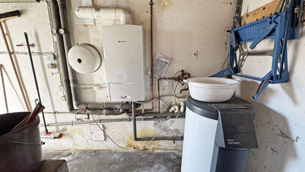 Das Haus ist mit der rückwärtigen Traufseite auf Grenze gebaut, sodass die aktuell noch vorhandenen Zugänge auf dieser Seite in Zukunft nicht mehr genutzt werden können und nach dem Kauf des Hauses zugemauert werden müssen. Es besteht jedoch die Möglichkeit sich Zugänge zum jetzigen Heizungsraum aus dem Innenbereich zu schaffen. Alternativ sind auch Außenzugänge an anderer Stelle möglich. Parkmöglichkeiten können an der nördlichen Grundstücksgrenze geschaffen werden. Alternativ befinden sich Parkmöglichkeiten im öffentlichen Bereich.