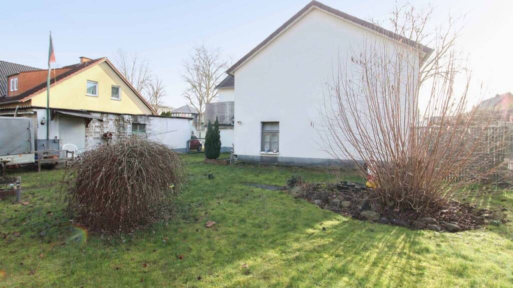 Das großzügige Grundstück mit etwa 815 Quadratmetern bietet einen Garten mit Terrasse und schafft zusätzlichen Wohnwert. Ergänzt wird das Angebot durch eine Doppelgarage, welche im Jahr 1968 genehmigt und errichtet wurde.