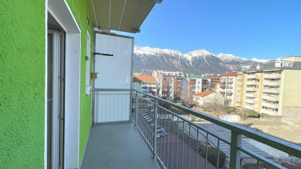 Der Balkon bildet die perfekte Erweiterung des Wohnraums und eröffnet gemeinsam mit mehreren Zimmern einen schönen Blick auf die Innsbrucker Bergwelt - ein täglicher Mehrwert, der das Wohnen hier besonders macht.