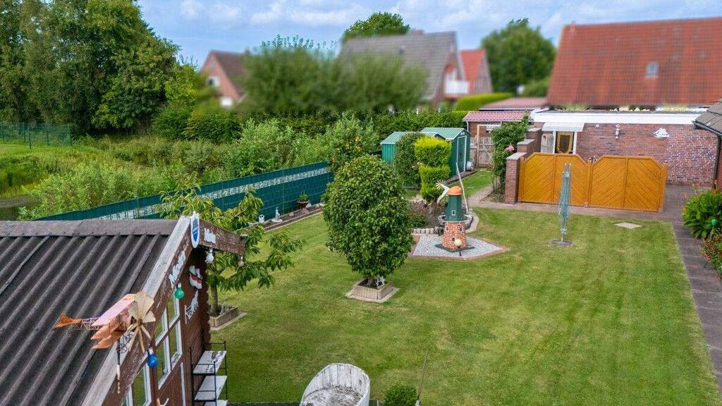 Die Raumaufteilung ist funktional und bietet ausreichend Platz für eine Familie oder Paare, die ein Zuhause mit großzügigem Grundstück im Ortskern von Hage suchen. Durch die zentrale Lage sind Einkaufsmöglichkeiten, Ärzte, Schulen und weitere Einrichtungen des täglichen Bedarfs bequem erreichbar.