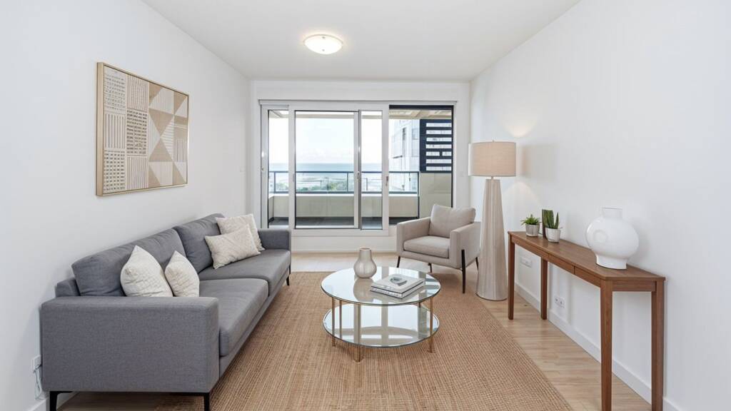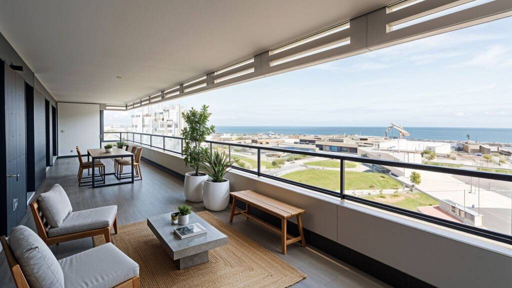 Panoramablick aufs Meer. Halbneues Apartment mit Terrasse.