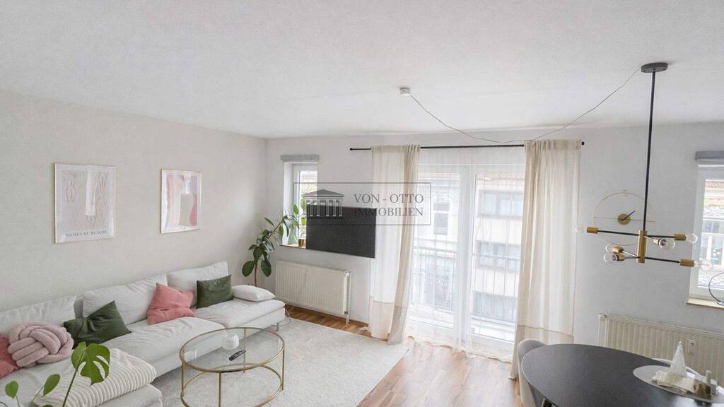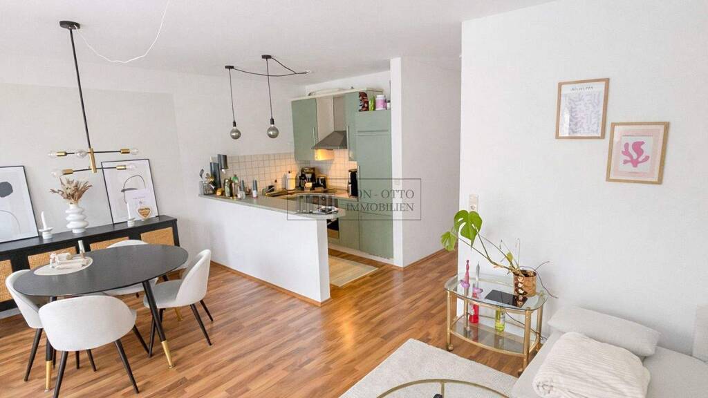 Bereits beim Betreten überzeugt die Wohnung durch ihre außergewöhnliche Helligkeit. Großzügige Fensterflächen lassen viel Tageslicht herein und schaffen eine offene, angenehme Wohnatmosphäre. Der Wohnbereich mit Zugang zum Balkon bildet das Herzstück der Immobilie - perfekt für entspannte Abende, Homeoffice-Tage oder gesellige Momente zu zweit. Die offene Küche fügt sich harmonisch in den Wohnraum ein und unterstreicht das moderne, kommunikative Wohnkonzept.