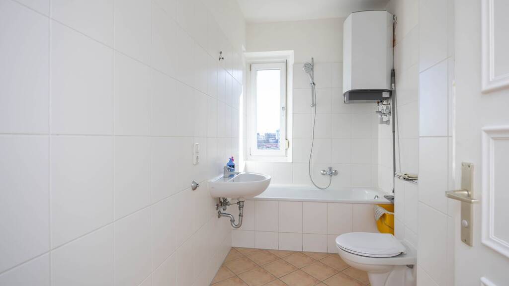 Neben einem bereits renovierten Tageslichtbadezimmer mit Waschtisch, WC sowie Badewanne verfügt die Wohnung über eine geräumige Wohnküche.