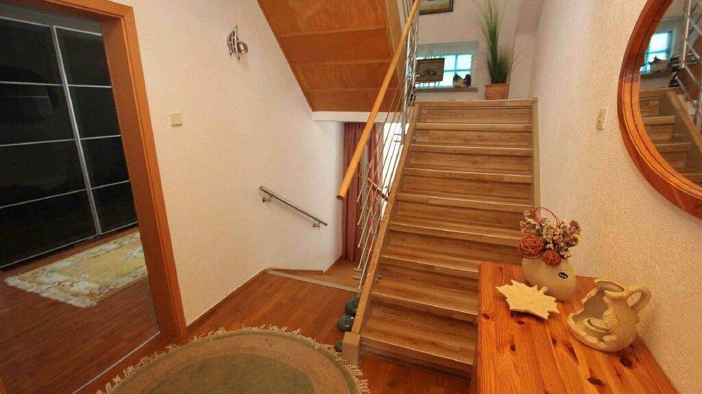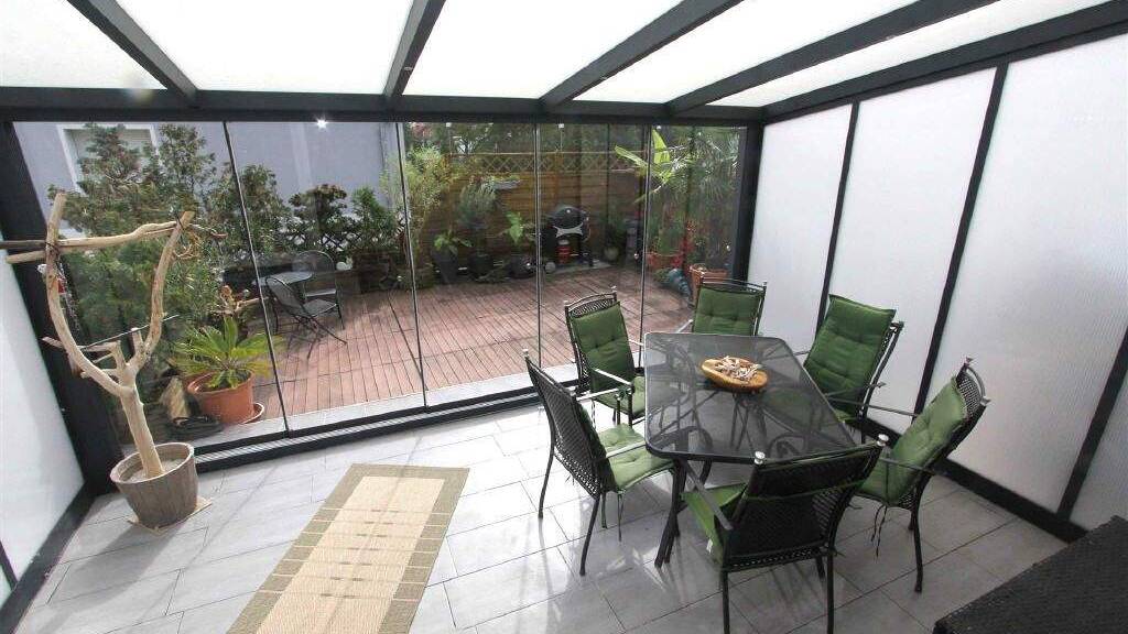 Die Wohnfläche beträgt ca. 194 m², verteilt auf 7 Wohnräume, eine Küche, zwei Bäder, einen Abstellraum, einen Wintergarten und eine Terrasse. Vom Wohnzimmer gelangt man in den hellen Wintergarten (17 m²) und weiter auf die großzügige Terrasse (33 m²). Im offenen Küchen- und Essbereich ist der Boden mit hochwertigem Parkett ausgestattet.