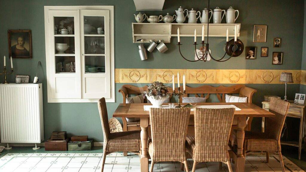 Die liebevolle Gestaltung der Wände und Decken verleiht den Räumen eine besonders harmonische Atmosphäre. Zudem wird auch der rustikale Charakter des Bauernhauses durch die Bodenbeläge aus Holz und Fliesen unterstrichen und bieten eine abwechslungsreiche Optik und schaffen eine behagliche Wohnatmosphäre.