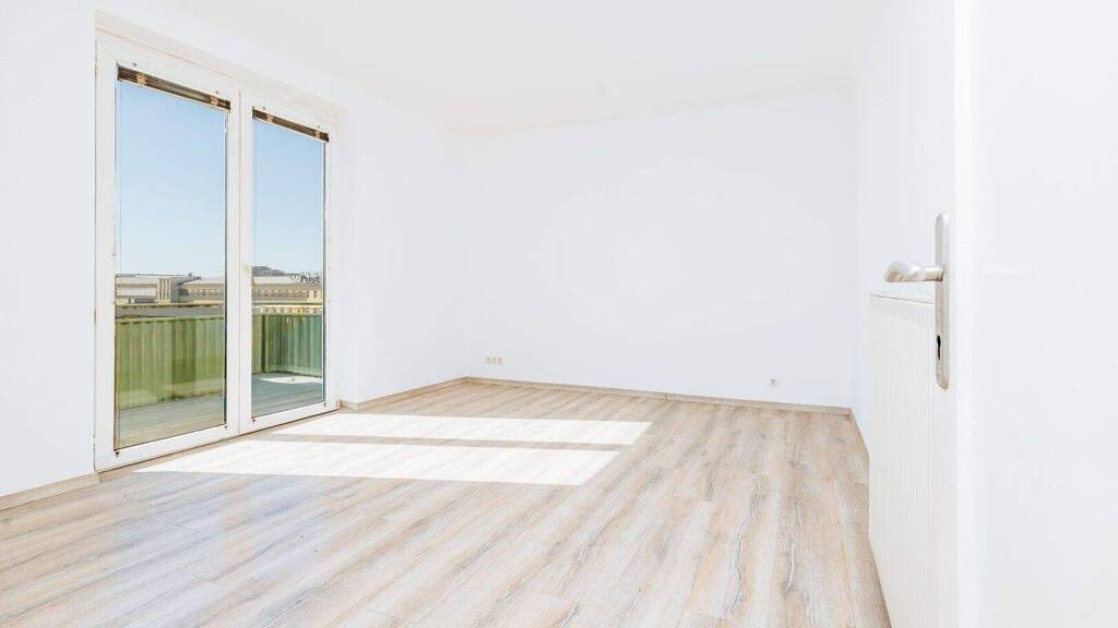 Wohnzimmer, Schlafzimmer und das dritte Zimmer (ideal als Kinderzimmer oder Büro) überzeugen mit Großzügigkeit und Helligkeit. Der elegante Bodenbelag sorgt in allen Räumen für ein harmonisches Gesamtbild.