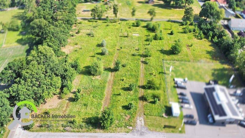 Baugrundstück MD (Ge) II, zweigeschossig, offene Bauweise Größe nach Wunsch planungsrechtlich Dorfgebiet: nur Betriebe für die Verarbeitung und Sammlung land- und forstwirtschaftlicher Erzeugnisse, Handwerksbetriebe, die der Versorgung der Bewohner dieses Gebietes dienen und sonstige nicht störende Gewerbebetriebe ausnahmsweise sonstige Wohngebäude, sofern für Aufsichts- und Bereitschaftspersonen, Betriebsinhaber und Betriebsleiter Pflanzgebot für 5 m breiten Grundstücksstreifen