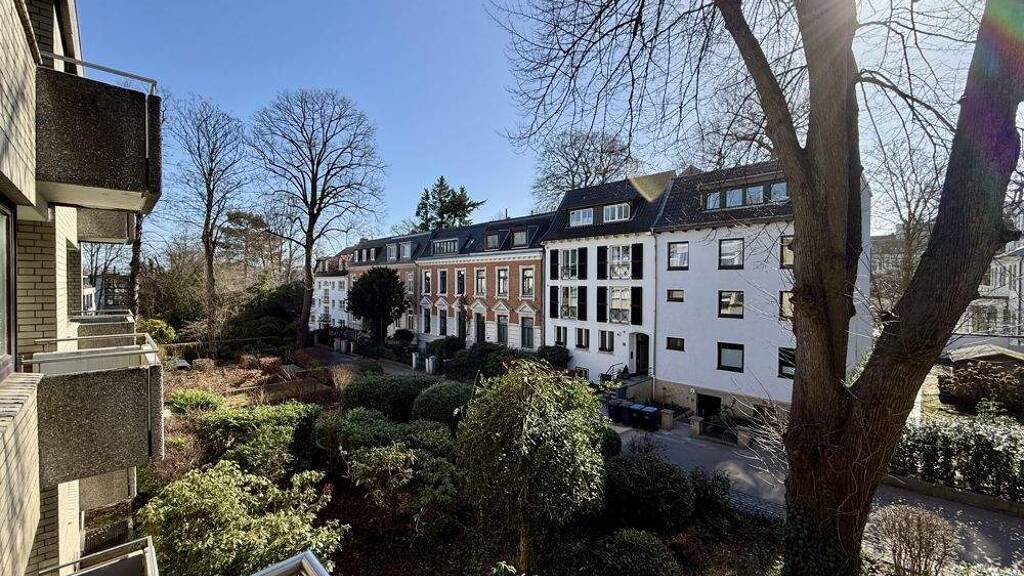 Schon die Lage dieser Wohnanlage überzeugt: In einer ruhigen, verkehrsberuhigten Sackgasse, angenehm zurückversetzt vom Mittelweg, erwartet Sie ein gepflegtes Ensemble aus dem Jahr 1973. Die Anlage wurde in solider, konventioneller Bauweise errichtet und umfasst insgesamt 59 Wohneinheiten, verteilt auf vier separate Hauseingänge.