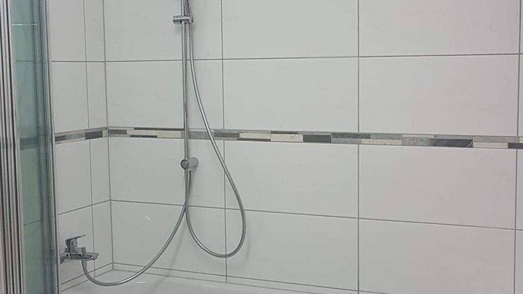- 1 x Bad mit Badewanne und 2 Waschbecken, Handtuchheizkörper