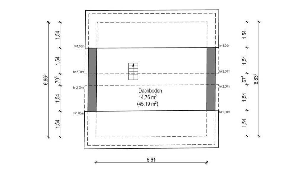 Erdgeschoss Wohnzimmer, kleines Esszimmer, kleine Küche Obergeschoss 2 kleine Schlafzimmer, ein kleines Durchgangszimmer (Büro), Bad Es gibt keinen üblichen Keller, lediglich einen kleinen, nicht ausgebauten, kellerähnlichen Raum.