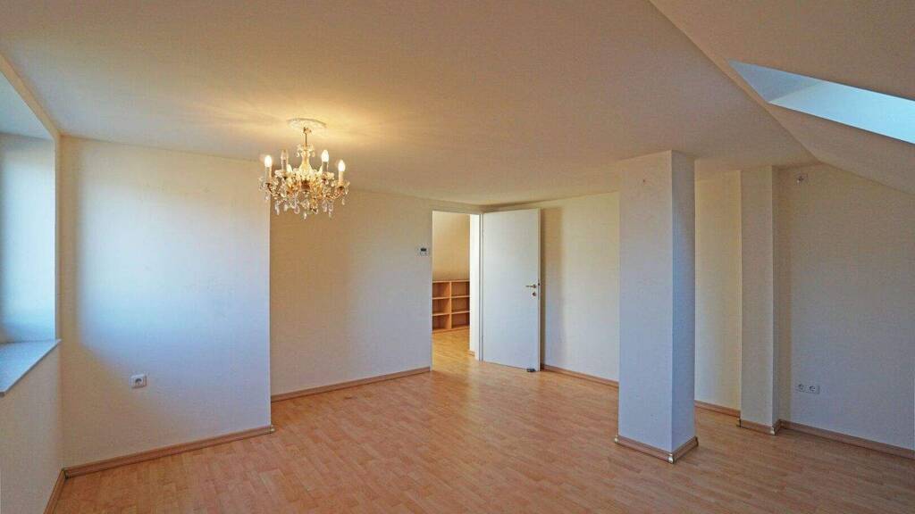Entweder über das Stiegenhaus oder über den Außenlift kommt man in das Dachgeschoß, das sich nach seinem Ausbau vor ca. 14 Jahren in ein geräumiges Vorzimmer mit ausreichend Staumöglichkeiten, Küche, Duschbad mit WC, ein geräumiges Schlafzimmer und das Wohnzimmer unterteilt. Aufgrund fehlender Ausbaupläne kann die Größe der Wohnräume nur geschätzt werden.