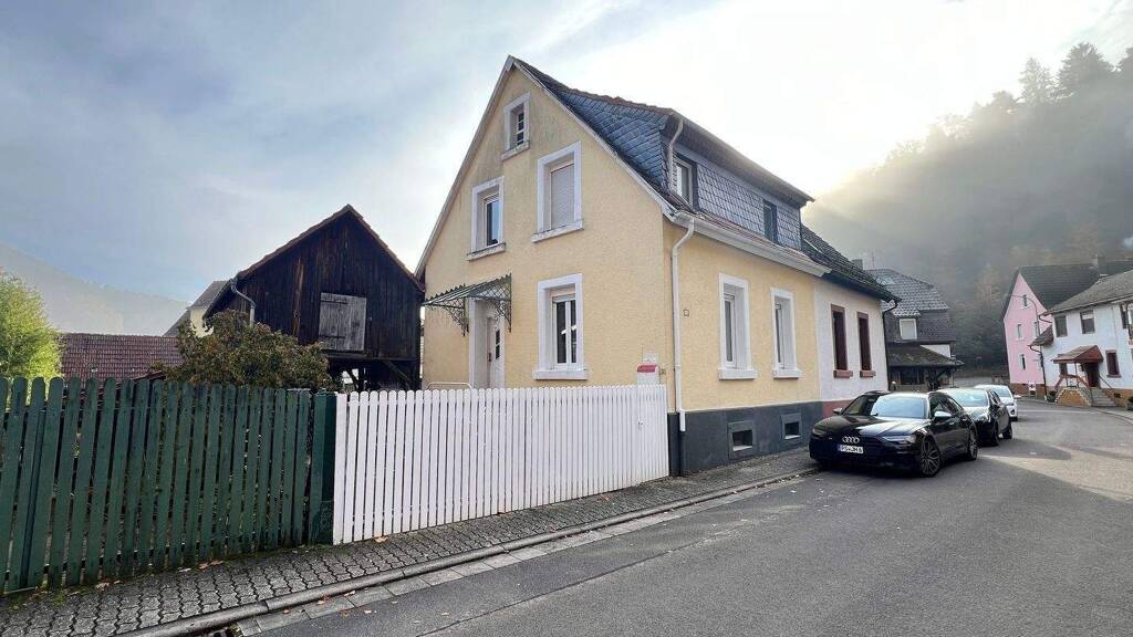 Entdecken Sie Ihr neues Zuhause in der charmanten und idyllischen Gemeinde Hinterweidenthal direkt am Fuß vom Teufelstisch. Diese gepflegte Doppelhaushälfte aus dem historischen Baujahr ca. 1880 bietet Ihnen alles, was das Herz begehrt. Auf einem Grundstück von ca. 213m² präsentiert sich das Haus mit einer Wohnfläche von ca. 85 m² verteilt auf zwei Etagen. Das durchdachte Raumkonzept bietet Ihnen drei geräumige Zimmer, darunter zwei behagliche Schlafzimmer sowie einem Tageslicht Badezimmer und einem Gäste-WC. Der großzügige Wohnbereich mit einem modernen Pelletofen, welcher als Zentralheizung durch Wärmeschächte dient, lädt zum Verweilen ein und schafft eine warme, einladende Atmosphäre. Highlight ist die überdachte Terrasse, welche angrenzend an die Küche für entspannte Stunden im Freien sorgt. Diese gepflegte Doppelhaushälfte verbindet ein großartiges Raumgefühl mit praktischer Ausstattung und überzeugt durch ihre Lage in einer ruhigen und naturnahen Umgebung. Hier genießen Sie die Ruhe des Landlebens und profitieren gleichzeitig von einer angenehmen Nähe zu städtischen Annehmlichkeiten.