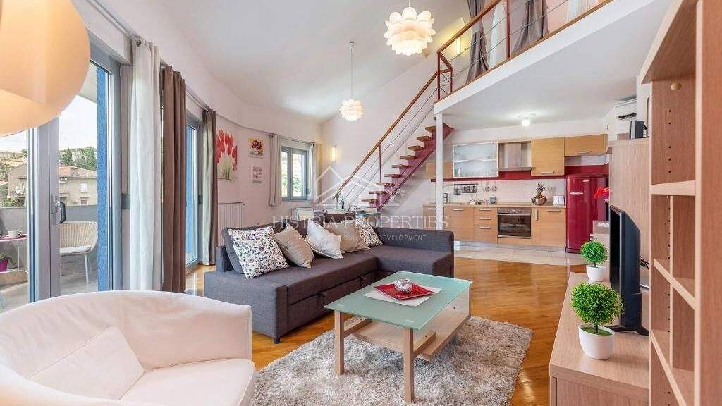 Im Herzen von Rijeka, nur wenige Gehminuten vom beliebten Rijeka Korzo entfernt, befindet sich dieses wunderschön eingerichtete und komplett möblierte Apartment mit zwei Terrassen und Meerblick.