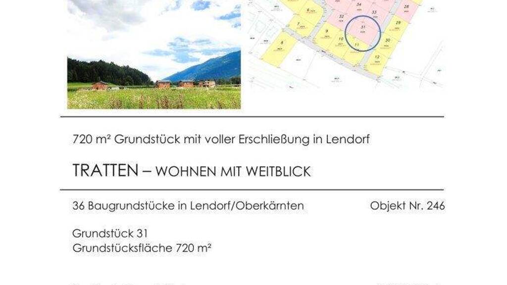 Mitten im Grünen und doch zentral: In der sonnigen Trattensiedlung in der Gemeinde Lendorf entstehen auf rund 2,5 ha Bauland insgesamt 36 attraktive Baugrundstücke, ideal für junge Familien, Naturliebhaber und alle, die ihr Eigenheim mit Weitblick verwirklichen möchten.