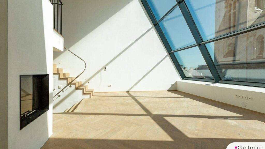 Top 20 ist eine gerade fertig gestellte 113,95m² große Dachgeschosswohnung im 4. und 5. Stock mit großer, westseitiger Terrasse mit Traumblick. Der 31,26m² große Wohnbereich mit den deckenhohen Schrägfenstern und dem spektakulären Blick auf die Türme der Canisius-Kirche, weiters mit dem Aufgang zur 24,27m² großen Wohnküche mit Zugang auf die große Terrasse bildet das absolute Highlight der Wohnung. Selbstverständlich gehört ein offener Kamin zum Wohnbereich.