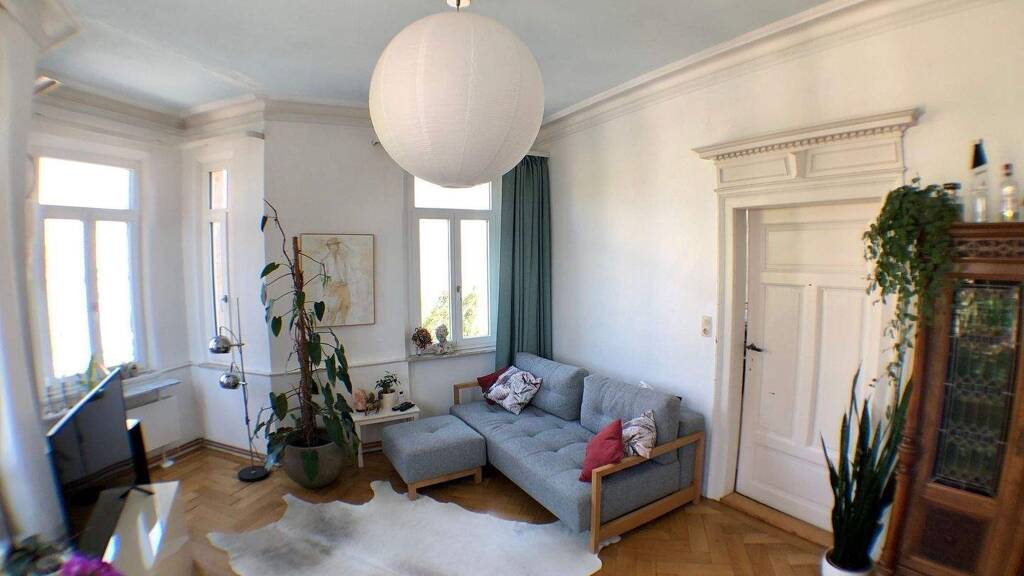 Die Ausstattung der Wohnung beeindruckt. Hochwertige Bodenbeläge wie Eichenholzparkettböden, angenehme Raumhöhen von bis zu 3,20 m sowie mit Stuck verzierte Geschossdecken und Türzargen sorgen für einen besonderen Altbauflair, der von ästhetischen Neuausstattungen aufgewertet wird.
