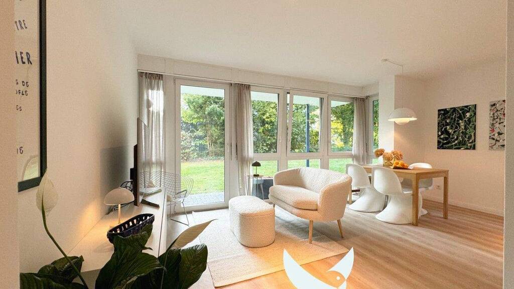 In absoluter Bestlage von Köln-Marienburg befindet sich diese modernisierte und möblierte 2-Zimmer-Wohnung mit Terrasse und Gartenzugang. Die Wohnung wurde 2024 aufwendig saniert und liegt im Erdgeschoss eines sehr gepflegten Hinterhauses, sodass man von der Terrasse aus direkten Blick und Zugang ins umliegende Grün hat. Zudem gibt es einen Tiefgaragenstellplatz sowie einen separaten Waschkeller.