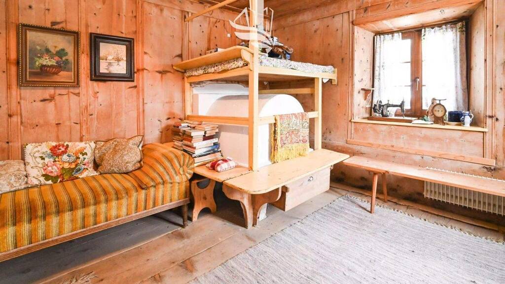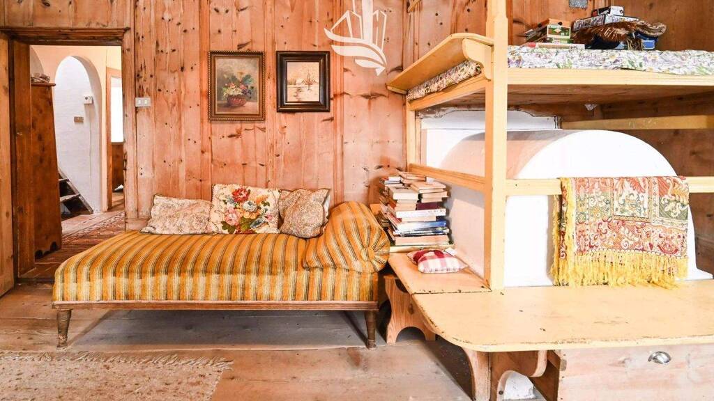 Große Duplexwohnung: Die Wohnung erstreckt sich über zwei Ebenen. Im Erdgeschoss befinden sich eine traditionelle holzgetäfelte Stube mit typischem bäuerlichen Holzofen, eine Wohnküche, ein großes Badezimmer sowie zwei Schlafzimmer. Eine interne Treppe führt in den ersten Stock, wo sich zwei weitere Schlafzimmer und ein Badezimmer befinden. Da in einem der Zimmer bereits die Anschlüsse für eine Küche vorhanden sind, könnte das Obergeschoss auch als separate Wohneinheit genutzt werden.