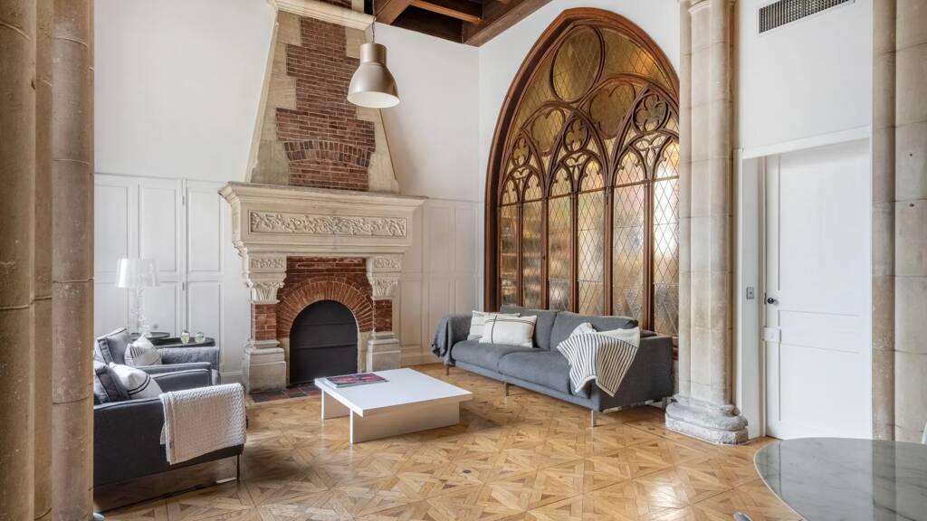 - 4.8m ceilings, parquet flooring, mouldings, and fireplace