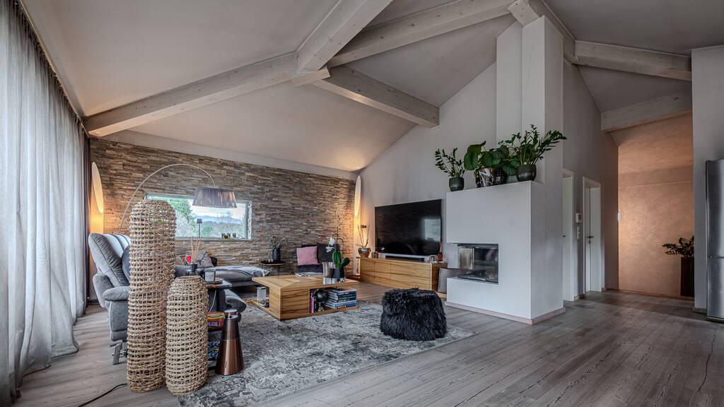 Umgehend werden Sie von der Raumhöhe begeistert sein. Licht- und sonnendurchflutet präsentiert sich der Wohn- /Essbereich mit offener Profiküche und Topgeräten.
