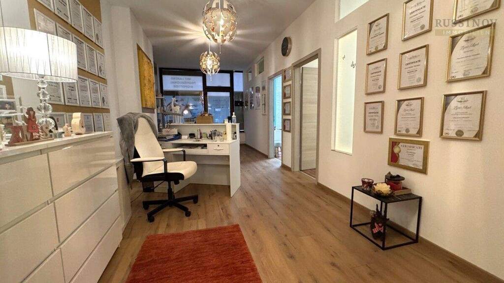 Die Räumlichkeiten im Erdgeschoss eignen sich ideal als Geschäfts-, Praxis- oder Dienstleistungsstandort. Der Boden ist mit Laminat ausgestattet und sorgt für eine angenehme und moderne Arbeitsatmosphäre. Eine kleine Küche sowie ein WC sind ebenso vorhanden.