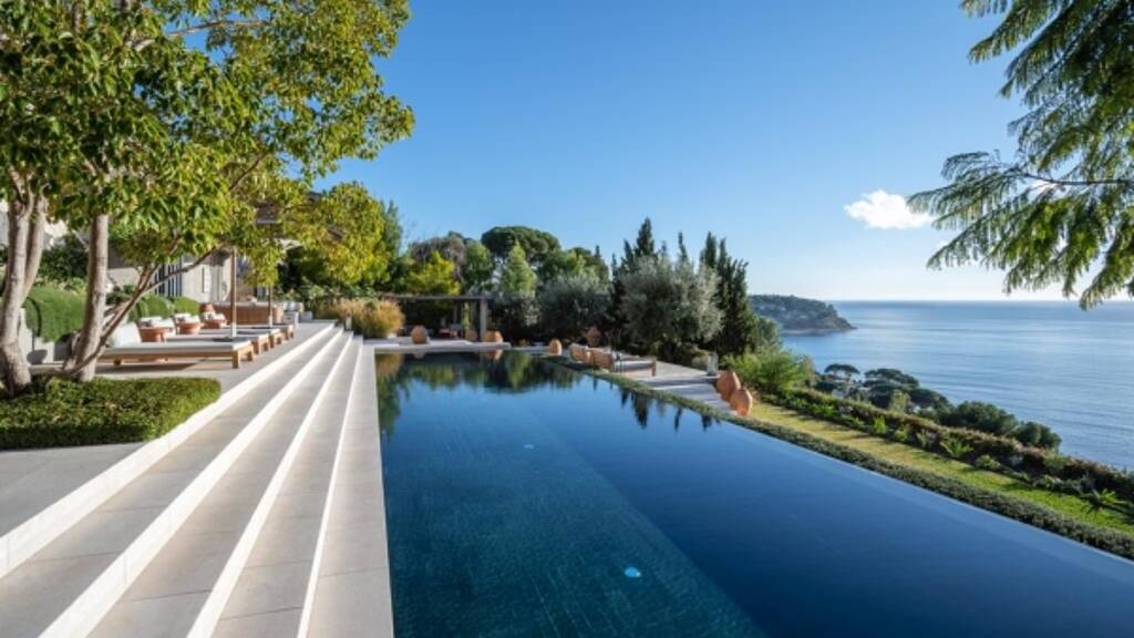 1.000 m² raffinierter Wohnraum, 7 Suiten, 2 Gästepavillons, Personalunterkünfte, Weinkeller, Freizeitraum. 8.000 m² terrassiertes Gelände, eine schattige Terrasse, ein Infinity-Pool mit Meerblick, Innen- und Außenkinos, ein Padelplatz, ein Outdoor-Fitnessstudio, Bowlingplatz. Ein sehr kurzer Spaziergang zu den Stränden und Saint-Jean-Cap-Ferrat, in der Nähe des Flughafens Monaco und Nnice. Ein Heiligtum von Design, Natur und mediterraner Eleganz.