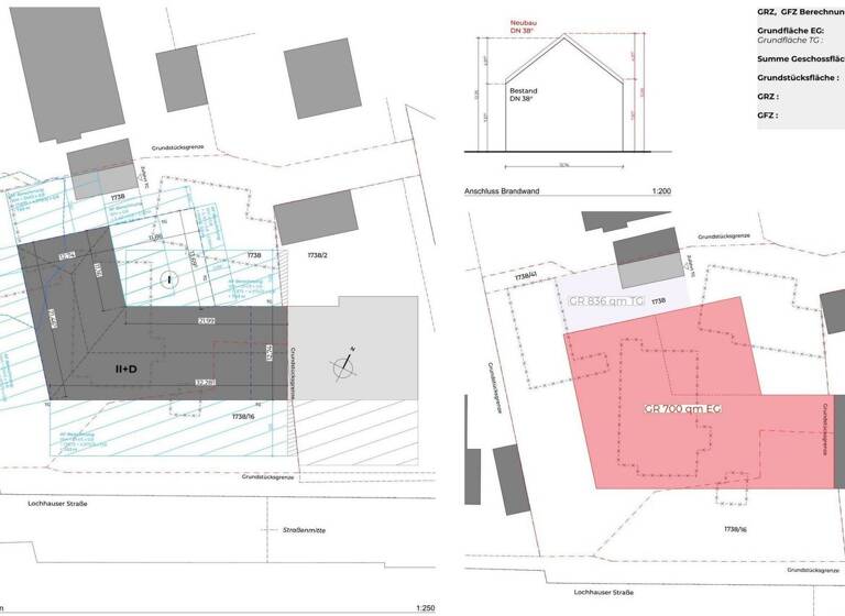 Stellplätze Fahrrad: 13 STP erforderlich (Gewerbe) Stichworte GRZ: 0.36, GFZ: 0.92, Gesamtfläche: 1.953,00 m²
