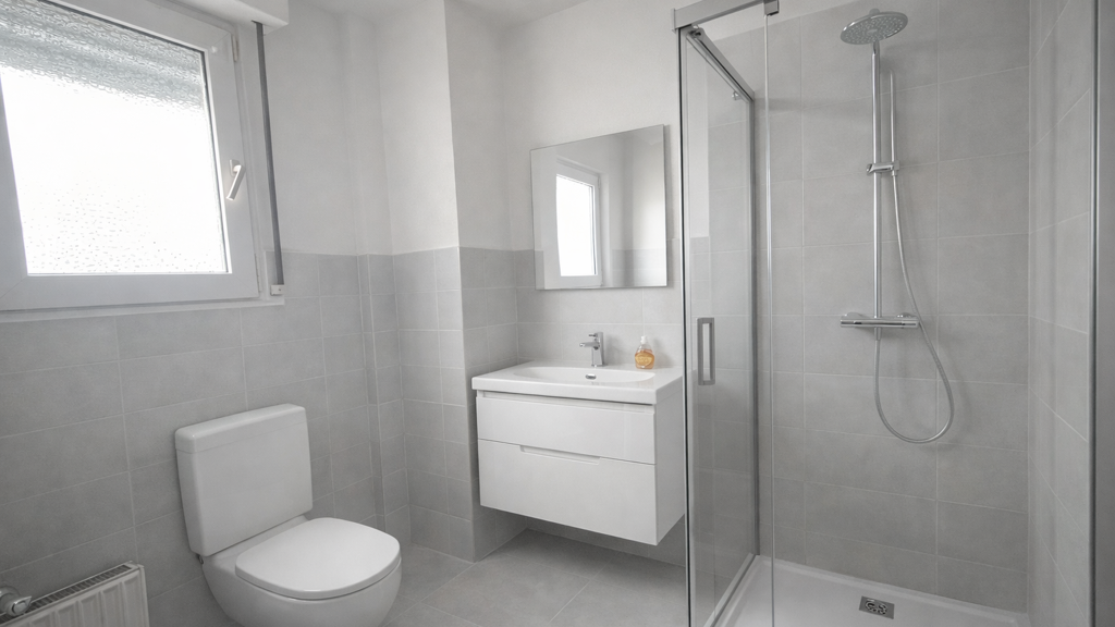 Badezimmer: Bad mit Dusche, Bad mit Fenster