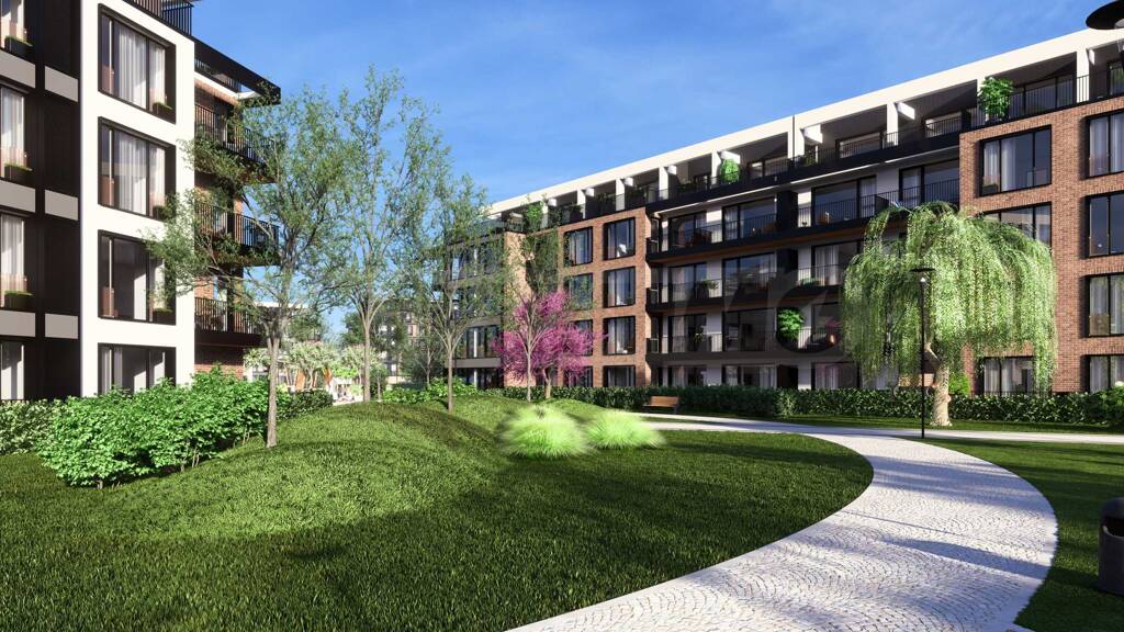 Das Projekt besteht aus 2 Gebäuden und vier Wohnabschnitten ? einer Flachbaubebauung mit einer Gesimshöhe von 10 m. Die Wohnabschnitte sind typisiert ? gespiegelt und wiederholbar. Es bietet Zwei-, Drei- und Vierzimmerwohnungen, Garagenzellen und Parkplätze, die vollständig in einer Tiefgarage realisiert sind, eine Parkumgebung mit zwei Kinderecken (5500 qm), ein Fitnessstudio im Freien und einen Wasserspiegel.