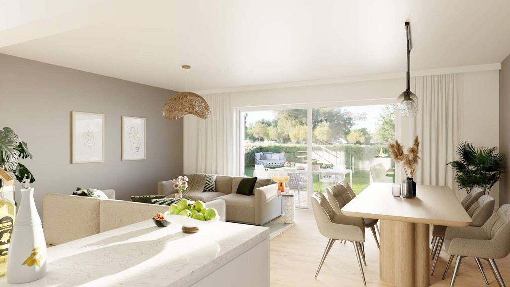 Das Erdgeschoss empfängt Sie mit einem großzügigen, hellen Wohnbereich, der direkt auf die sonnige Terrasse mit Südostausrichtung führt. Die offene Wohnküche lädt dazu ein, gemeinsam zu kochen, Neues auszuprobieren und kulinarische Ideen Wirklichkeit werden zu lassen. Durch die Terrassentür strömt frische Luft herein und öffnet den Blick ins Grüne - ein wunderbarer Ort, um den Tag zu beginnen oder entspannt ausklingen zu lassen. Abgerundet wird das Erdgeschoss durch ein stilvolles Badezimmer und eine praktische Garderobe.