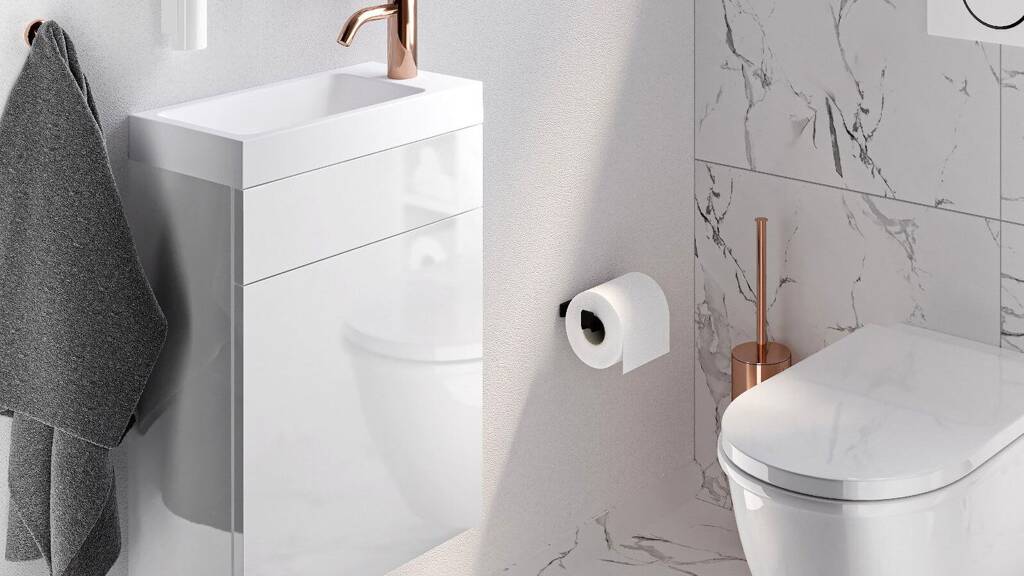 * separate Toilette mit Handwaschbecken