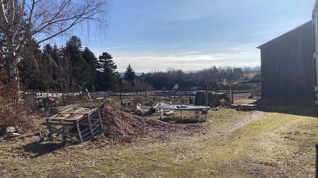 - Neben der Scheune, die derzeit als zu Hause für Pferde genutzt wird als eine derzeit Pferdekoppel genutzt