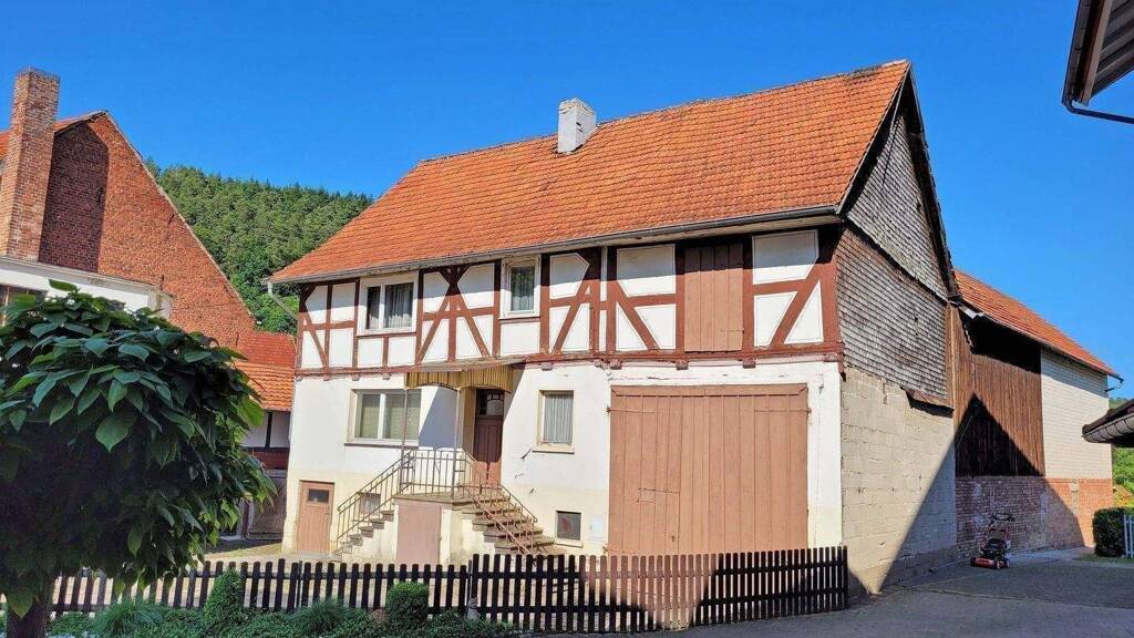 Bei dem Wohnhaus handelt es sich um ein zweigeschossiges, teilweise unterkellertes Gebäude mit nicht ausgebautem Dachgeschoss, sowie integrierter ehemaliger Scheune. An das Wohnhaus mit Scheune ist ein weiteres Wirtschaftsgebäude angebaut. Die Zimmerhöhen sind liegen bei ca. 2 Metern, teilweise auch etwas höher.