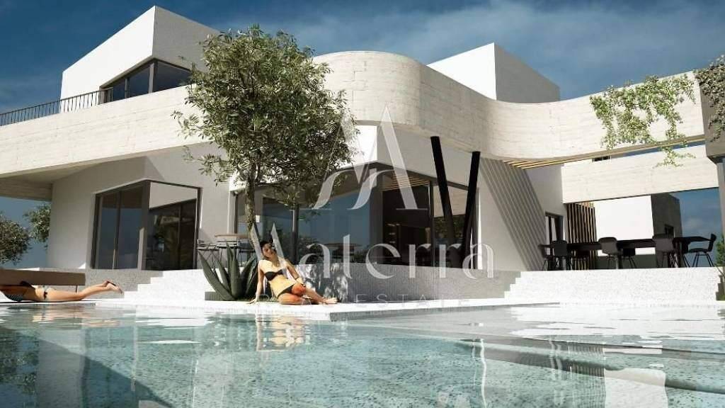 Im Erdgeschoss gibt es zwei Master-Schlafzimmer mit eigenen Badezimmern, eine Küche, ein Esszimmer, ein Wohnzimmer, ein Gäste-WC, eine Waschküche, drei Terrassen, eine Sommerküche, einen Pool, eine Garage sowie insgesamt sechs Stellplätze (davon drei überdacht).
