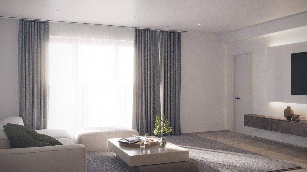 Der weitläufige Wohn- und Essbereich besticht durch seine Großzügigkeit und große Fensterflächen, die für ein helles, offenes Wohngefühl sorgen. Die offen geplante Küche fügt sich ideal in den Wohnraum ein und bietet Raum für individuelle Gestaltungsideen. Das moderne, stilvoll ausgestattete Bad rundet das hochwertige Gesamtbild der Wohnung ab.