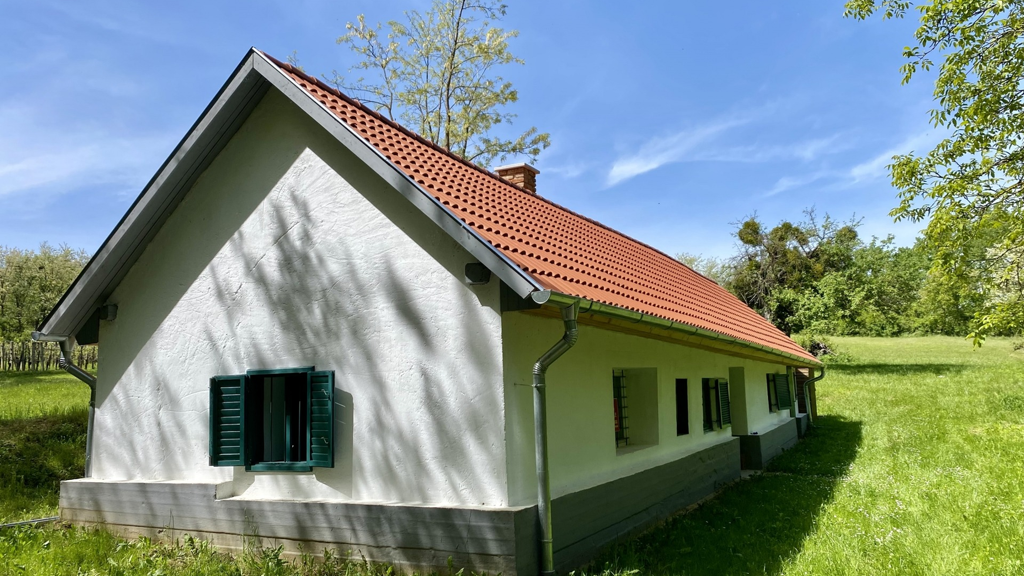 Die Gesamtfläche von 2877 qm ist über eine gut befahrbare Schotterstraße zu erreichen. Das Gebäude darauf ist 70 m² groß, aus Lehmziegeln gebaut und seine Struktur ist stabil und trocken. In den Jahren 2022-23 wurde es einer Renovierung unterzogen. In diesem Rahmen wurde die Struktur des Daches erneuert und eine neue Ziegedeckung erhalten. Der Schornstein wurde neu aufgebaut. Die Außenfassade und das Mauerwerk im Inneren wurden neu verputzt und in ein einheitliches Weiß gestrichen. Es gibt 4 Zimmer im Gebäude, von denen eines über einen separaten Eingang zugänglich ist. Ein gegrabener Brunnen sichert die Wasserversorgung des Grundstücks. Es gibt kein Stromnetz, das muss im Moment auf eine andere Art und Weise gelöst werden, aber es wird in naher Zukunft gebaut werden. Von der Umgebung aus entfaltet sich ein wunderschönes Landschaftspanorama bis hin zum Keszthelyer Gebirge, den umliegenden Wäldern und dem Szent György Hügel.