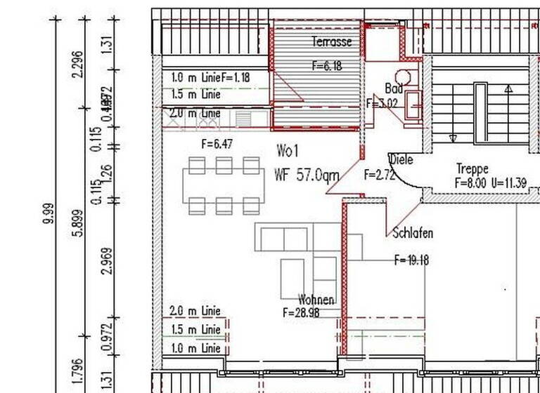 Bemerkungen: .Voll möbliert .Separates Schlafzimmer .Großzügiger Wohn- / Essbereich .Moderne Küche mit Geschirrspüler, Herd, Backofen und Kühlschrank .Tageslichtbad mit Dusche .Eigene Terrasse .Highspeed-Internet bis 1 Gbit/s verfügbar .Ruhige Dachgeschosslage