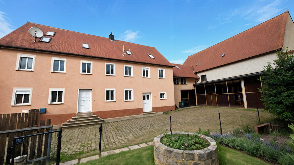 Inmitten des fränkischen Seenlandes liegt dieses innen renovierte, ca. 316 m² große dreistöckige Gebäude mit guter Bausubstanz und ca. 575 m² großem Garagenkomplex. Jede Etage verfügt über ein Wohnzimmer, eine Einbauküche und erneuerte Badezimmer mit Waschmaschinenanschlüssen. Die insgesamt 13 Zimmer sind schön renoviert und hell.