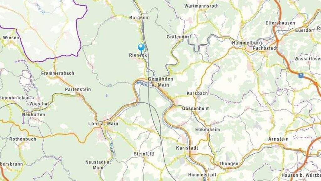 Rieneck liegt als eine der kleinsten Städte Bayerns im Landkreis Main-Spessart, jeweils ca. 50-60 km von Würzburg, Schweinfurt und Aschaffenburg entfernt.