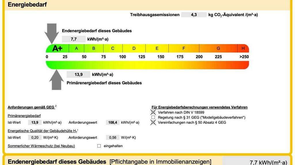 Bj. 2022; EA-B, Energieträger: Strom-Mix (Wärmepumpe); 7,7 kWh/(m²a); EEK A+