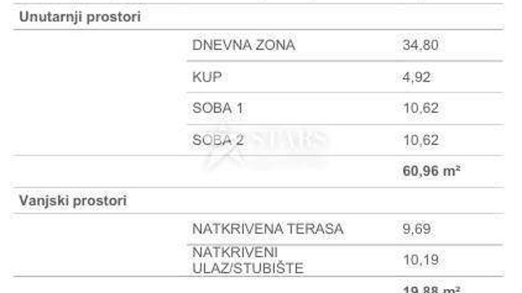 -Wohnzimmer mit Küche und Essbereich (34,80 m²): Ein offener und geräumiger Bereich mit Zugang zur überdachten Loggia (9,69 m²), ideal zum Entspannen an der frischen Luft und mit herrlichem Meerblick. -Zwei Schlafzimmer (je 10,62 m²): Komfortabel und privat. -Badezimmer (4,92 m²): Modern und funktional , Fußbodenheizung im Badezimmer -Eingangsflur und überdachter Eingang (10,19 m²): Praktisch und stilvoll gestaltet. Lage und Vorteile: