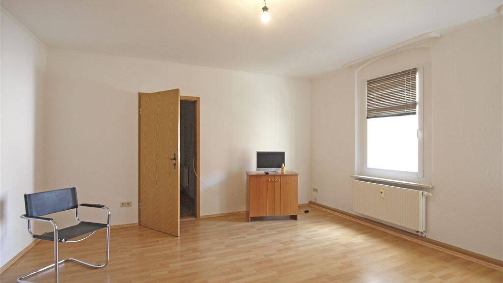 - Küche ohne Fenster, ausgestattet mit Mobiliar - Bad innenliegend mit Dusche, gefliest, Waschmaschinenanschluss - Wohnzimmer und Schlafzimmer mit Laminatboden - Abstellraum in der Wohnung