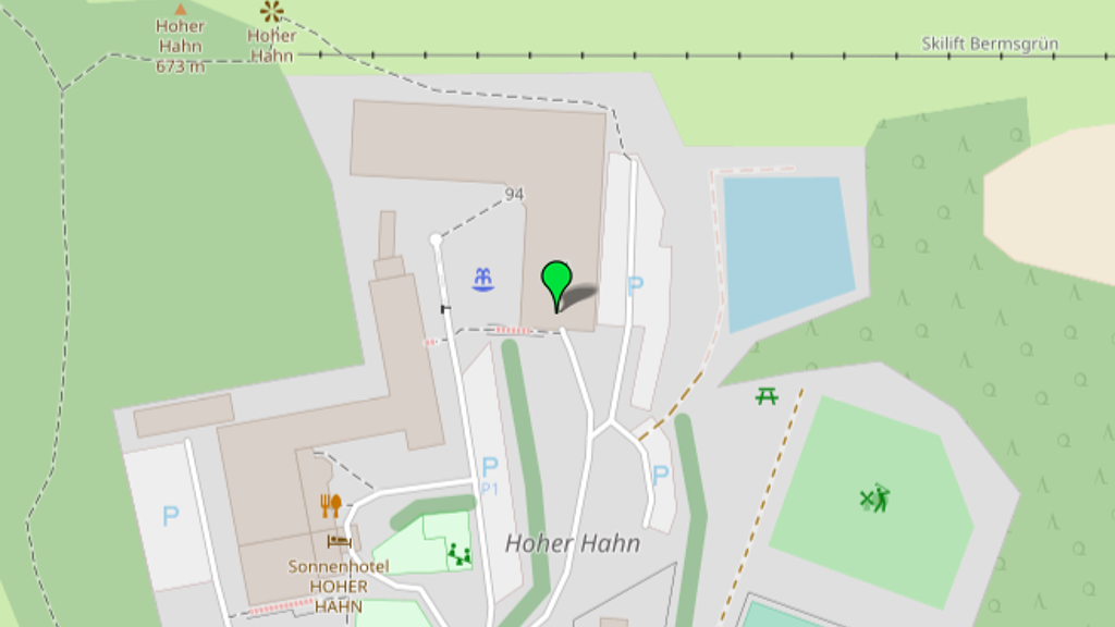 Die Wohnung befindet sich direkt "Am Hohen Hahn" in Bermsgrün, gegenüber dem Sonnenhotel. Einrichtungen des Hotels, welche in 2 Minuten fußläufig erreichbar sind, stehen entgeltlich zur Nutzung z.B. Saunen, Schwimmbad, Minigolf, Tennis im Angebot.