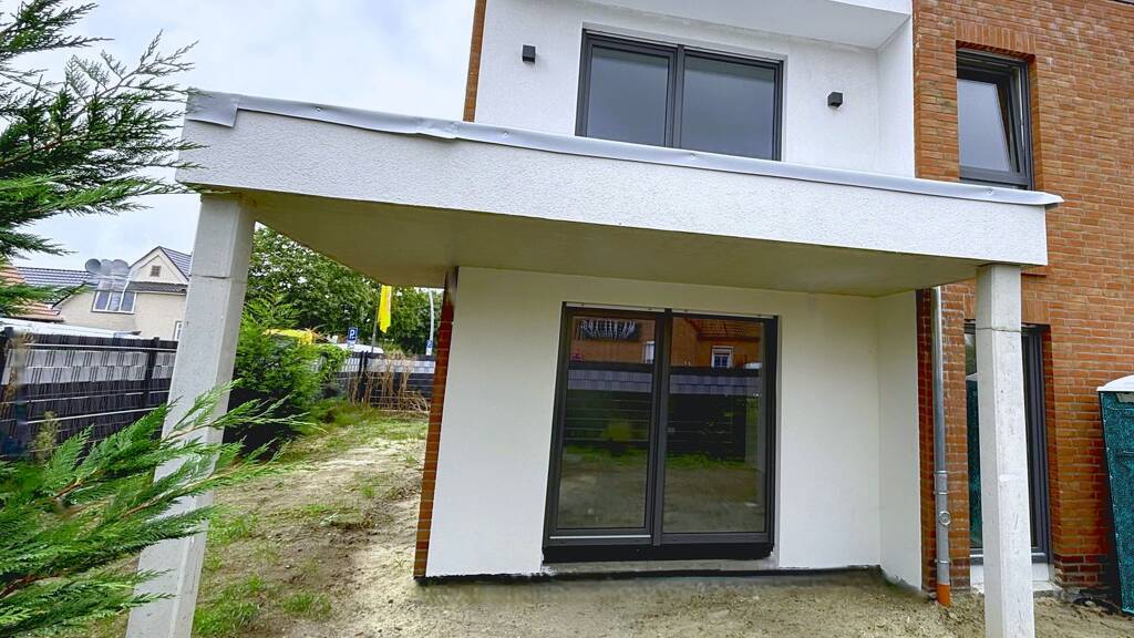 Diese exklusive Neubauwohnung wird im Jahr 2025 fertiggestellt und steht voraussichtlich ab dem 1. Dezember 2025 zur Verfügung. Sie befindet sich im Erdgeschoss eines modernen Zweifamilienhauses, das durch seine hochwertige Bauweise besticht. Der Zugang zur Wohnung erfolgt über ein gemeinsames Treppenhaus. Schon beim Betreten empfängt Sie ein großzügiger, lichtdurchfluteter Flur, der eine einladende Atmosphäre schafft und den Zugang zu allen Räumlichkeiten der Wohnung bietet. Auf der rechten Seite befinden sich zwei gleich große Schlafzimmer, die sich ideal als Kinderzimmer, Büro oder Gästezimmer nutzen lassen. Direkt nebenan liegt ein praktisches Gäste-WC, das den Wohnkomfort zusätzlich erhöht. Der offene Wohn-/Ess- und Kochbereich bildet das Herzstück der Wohnung. Hier sorgen große Fensterfronten für eine helle, freundliche Atmosphäre und bieten einen wunderbaren Ausblick auf die angrenzende, überdachte Terrasse mit Garten, der zum Verweilen einlädt. Vom Wohnbereich aus gelangt man in einen durchdachten Abstellraum, der auch den Waschmaschinenanschluss beherbergt und zusätzlichen Stauraum bietet. Ebenfalls direkt angeschlossen sind das stilvoll ausgestattete Duschbad sowie das geräumige Hauptschlafzimmer. Diese Neubauwohnung bietet durch ihre durchdachte Raumaufteilung und hochwertige Ausstattung ein Wohngefühl der Extraklasse und eignet sich ideal für Paare und Familien, die Wert auf Komfort und modernes Wohnen legen.